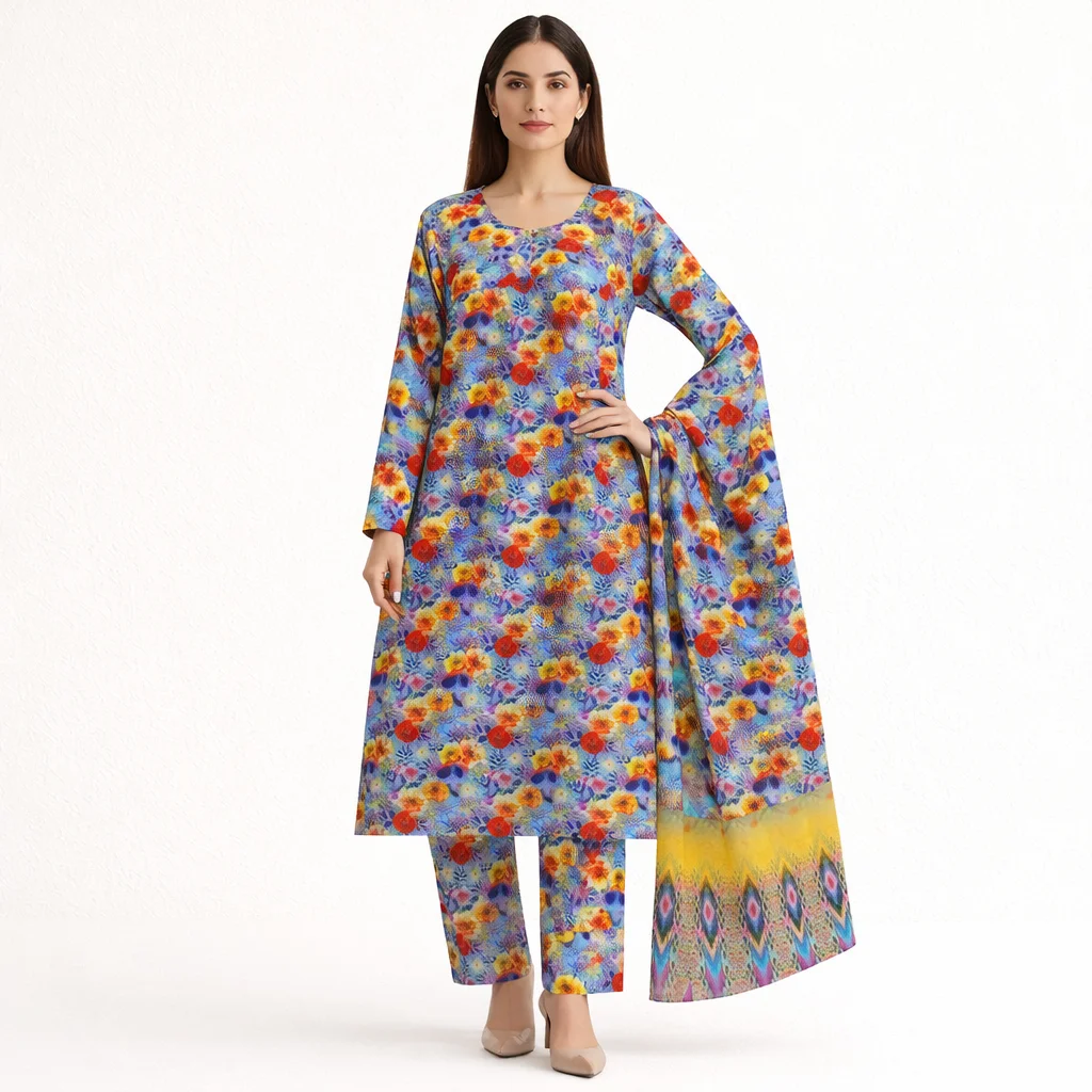 Elegant and refreshing Chahat Classic Digital Vol-1004 (D#131) 3 Piece unstitched cotton suit featuring a beautiful dusty pink floral digital printed shirt, matching printed dupatta, and coordinated printed trouser.