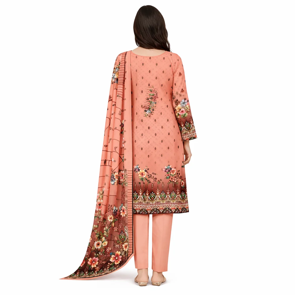 Charizma 3 Piece Vol-10002 Digital Printed Cotton Suit is a premium unstitched summer outfit featuring an all-over digital printed cotton shirt, matching digital printed cotton dupatta, and dyed cotton trouser.