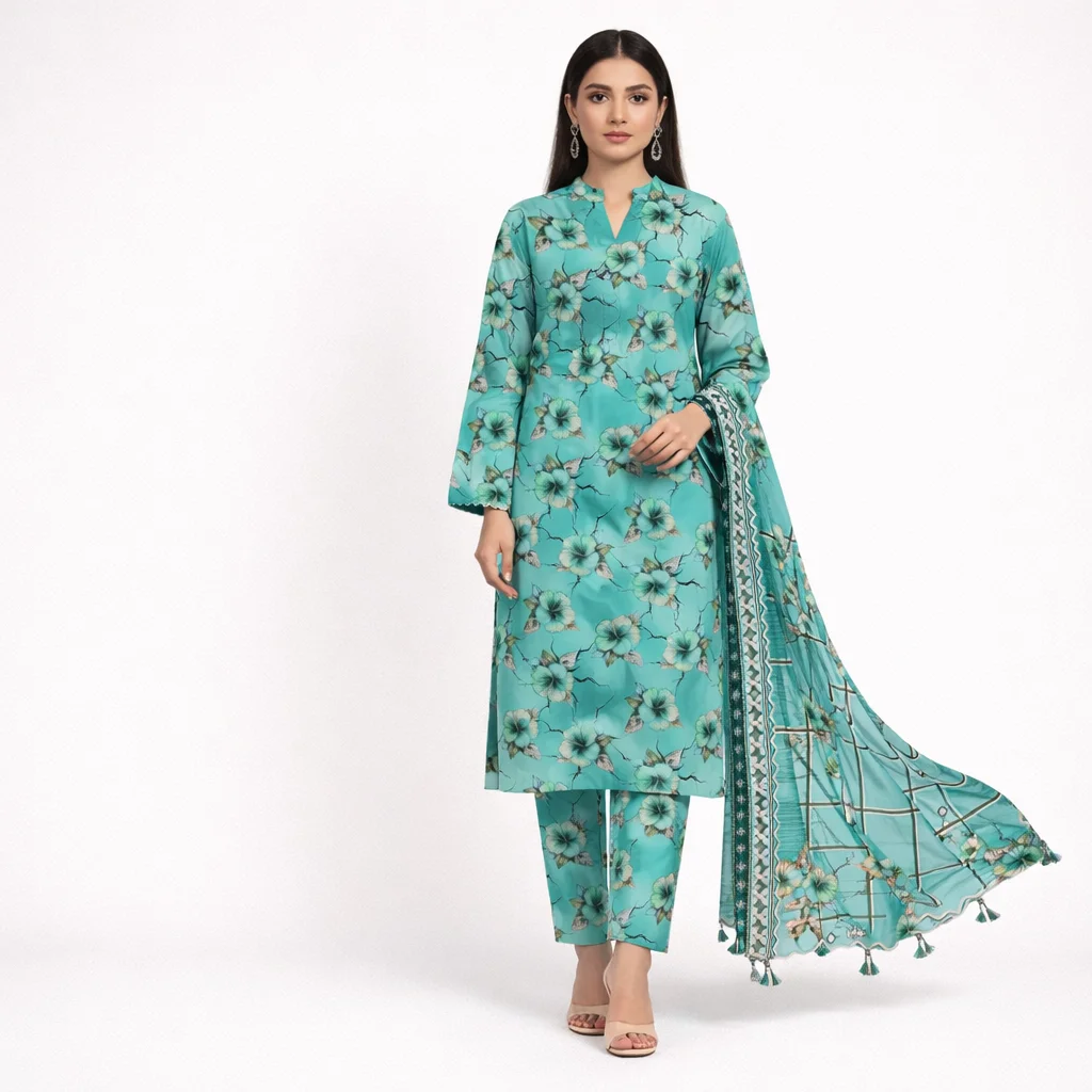 Enhance your seasonal wardrobe with the elegant Fivee Star 3 Piece Digital Printed Cotton Suit Vol-10004. Designed with premium quality cotton fabric, this unstitched ensemble combines comfort, style, and contemporary digital aesthetics.