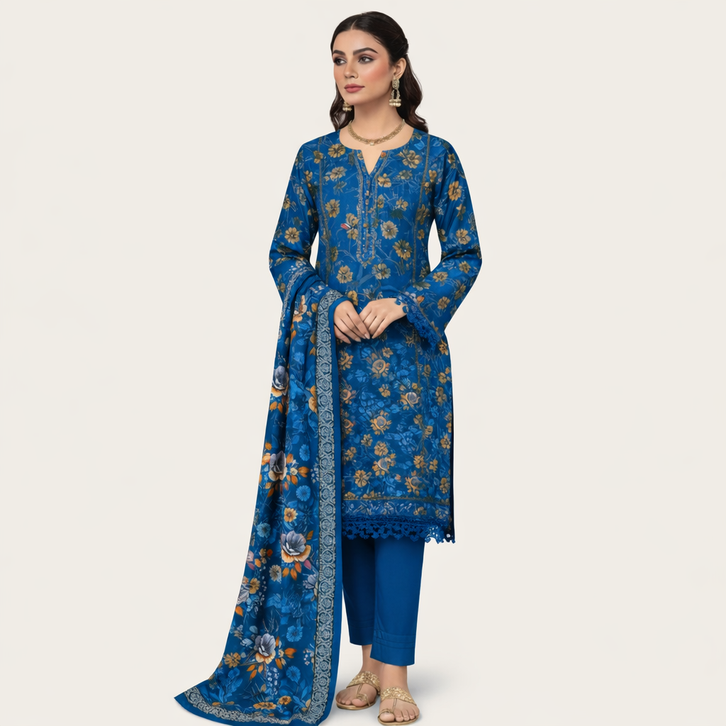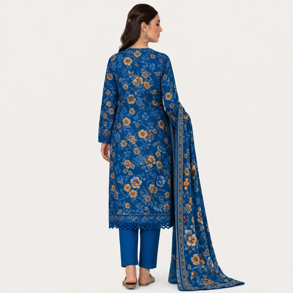 Premium quality digital printed lawn shirt with matching trouser and beautiful dupatta. Perfect summer collection for ladies in Pakistan.
