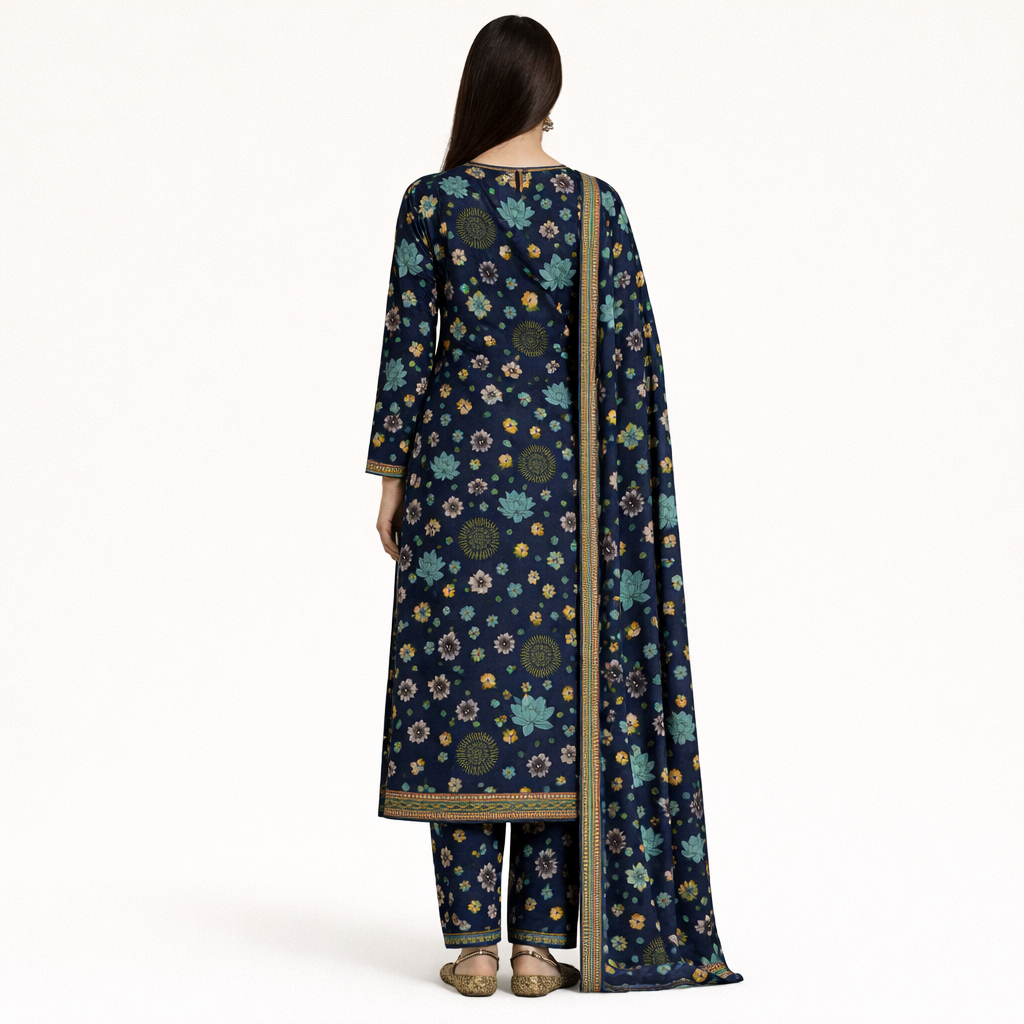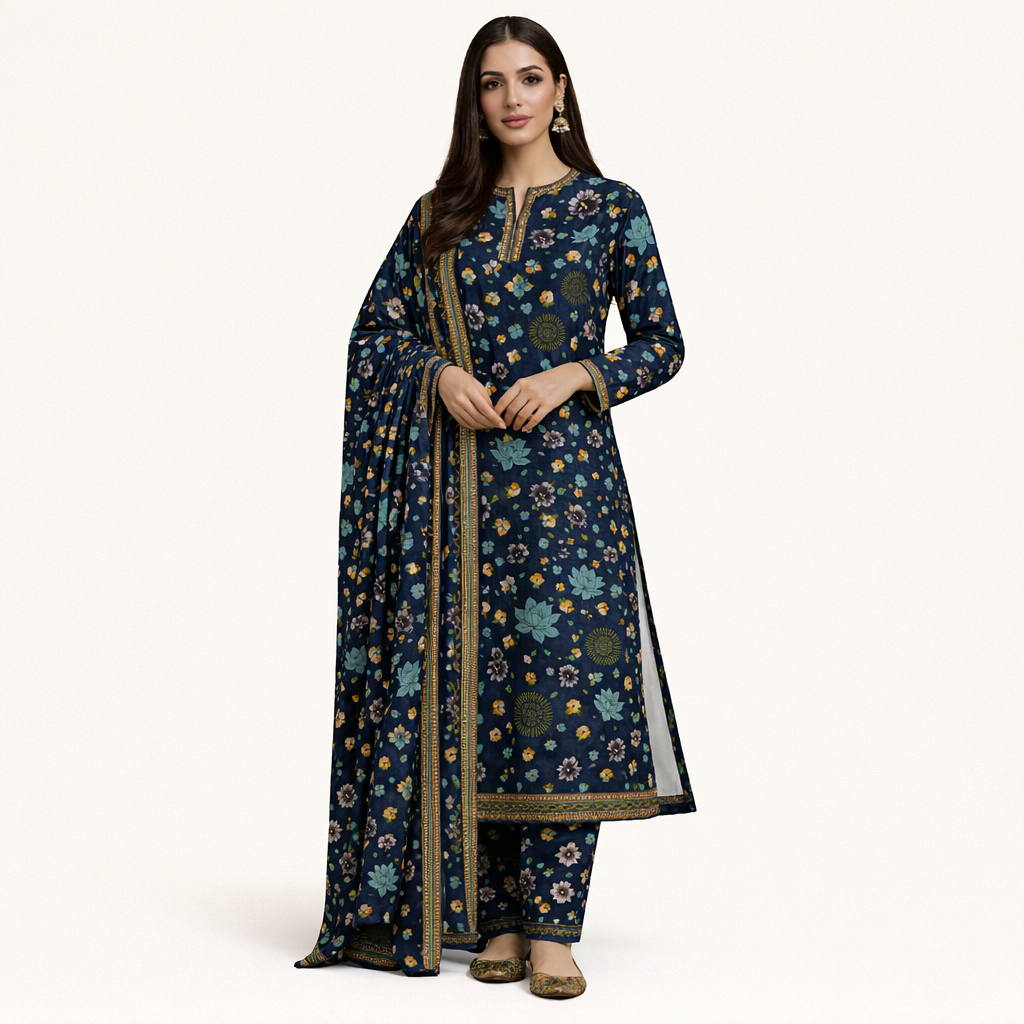Premium quality digital printed lawn shirt with matching trouser and beautiful dupatta. Perfect summer collection for ladies in Pakistan.